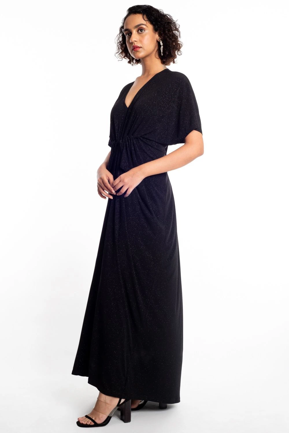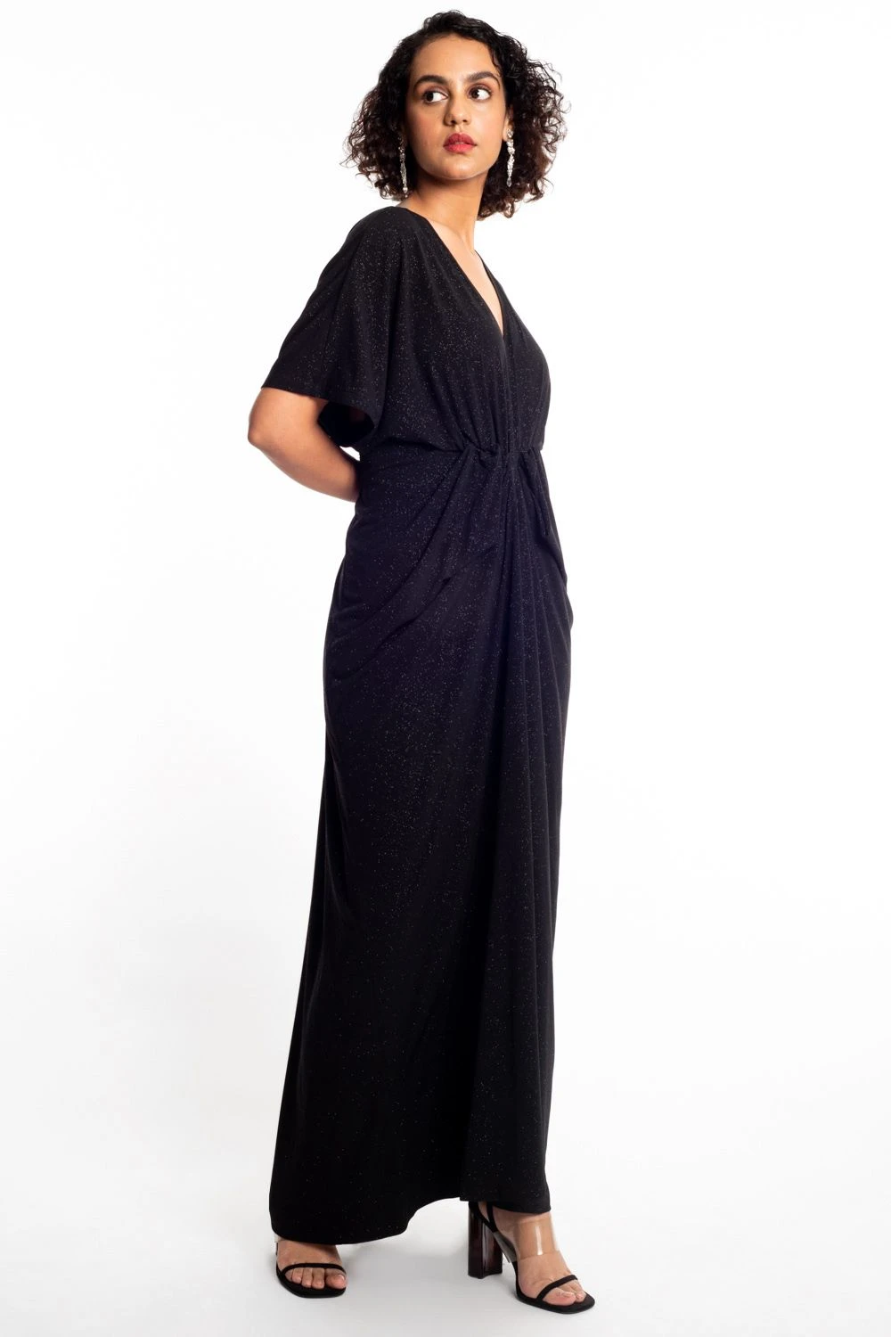 The perfect amalgamation of style & comfort. this black dress is perfect for a day out. crafted in jersey fabric, this long dress features a V-neck & a ruched waist. Style this dress with dainty jewellery to complete the look.