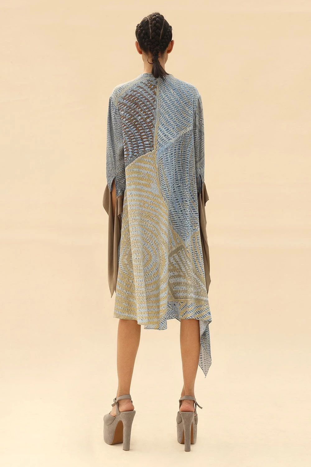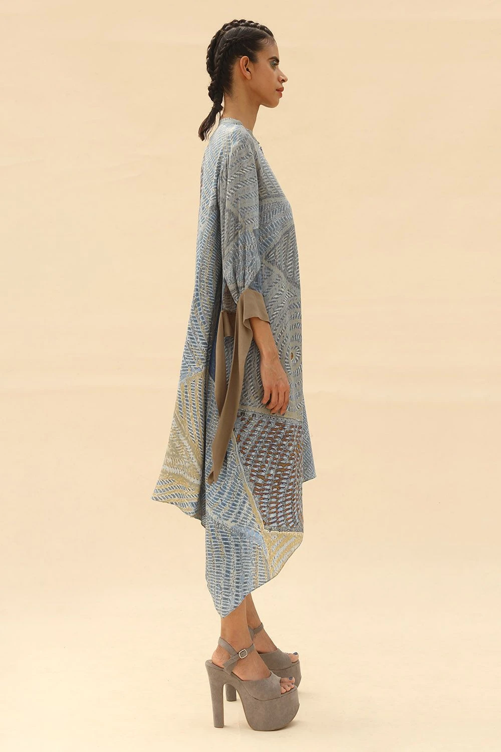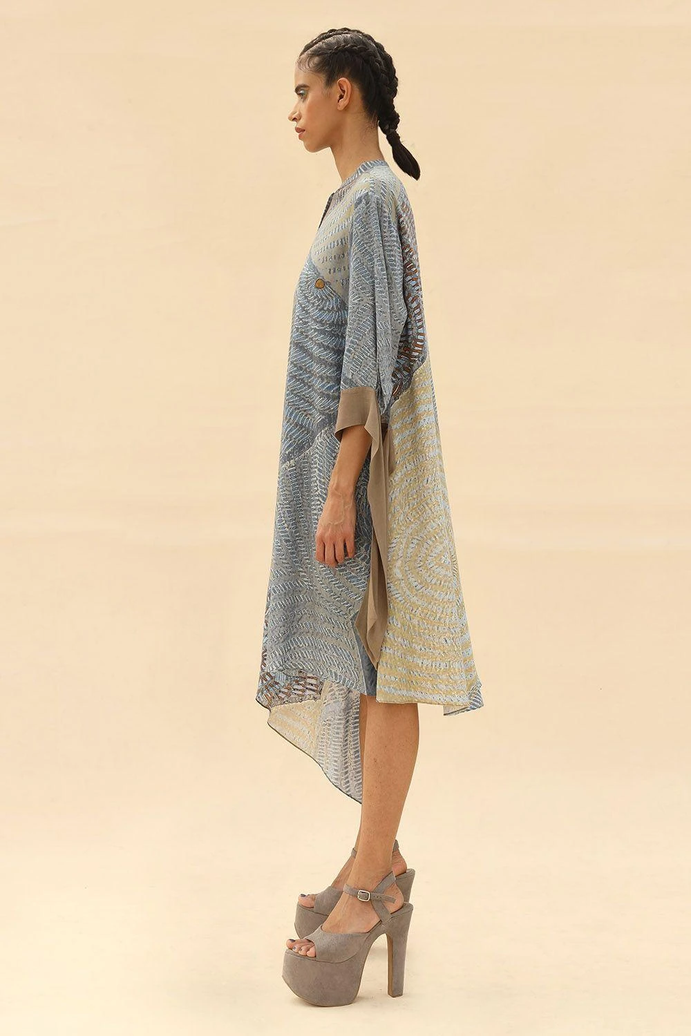 This ocean blue tie & dye shirt dress has tie up detailing on the sleeves. This summery piece can be styled with subtle accessories for an effortlessly fashionable look.