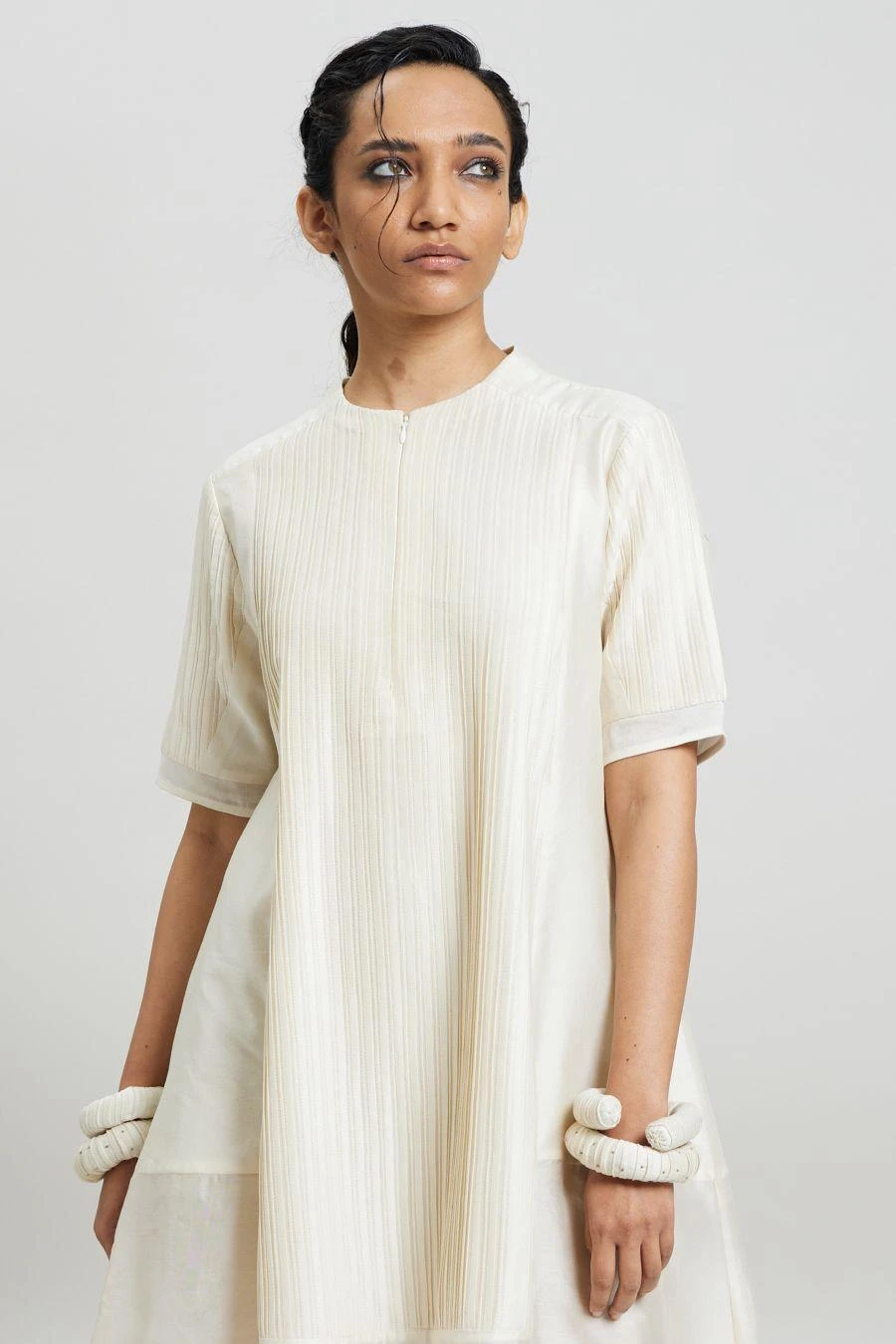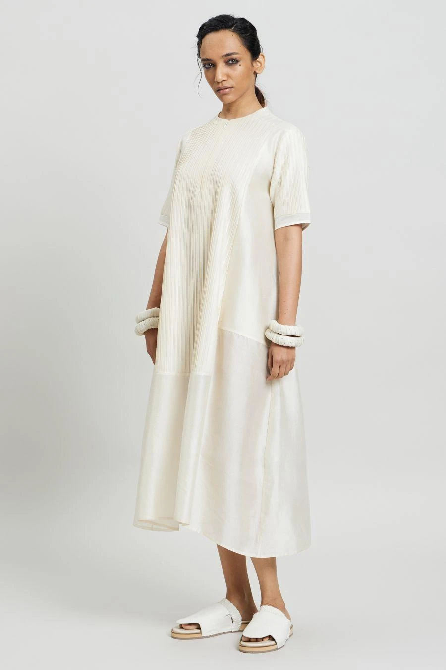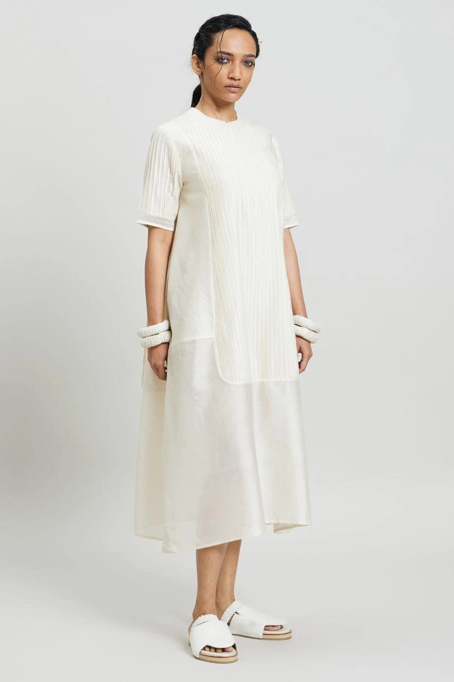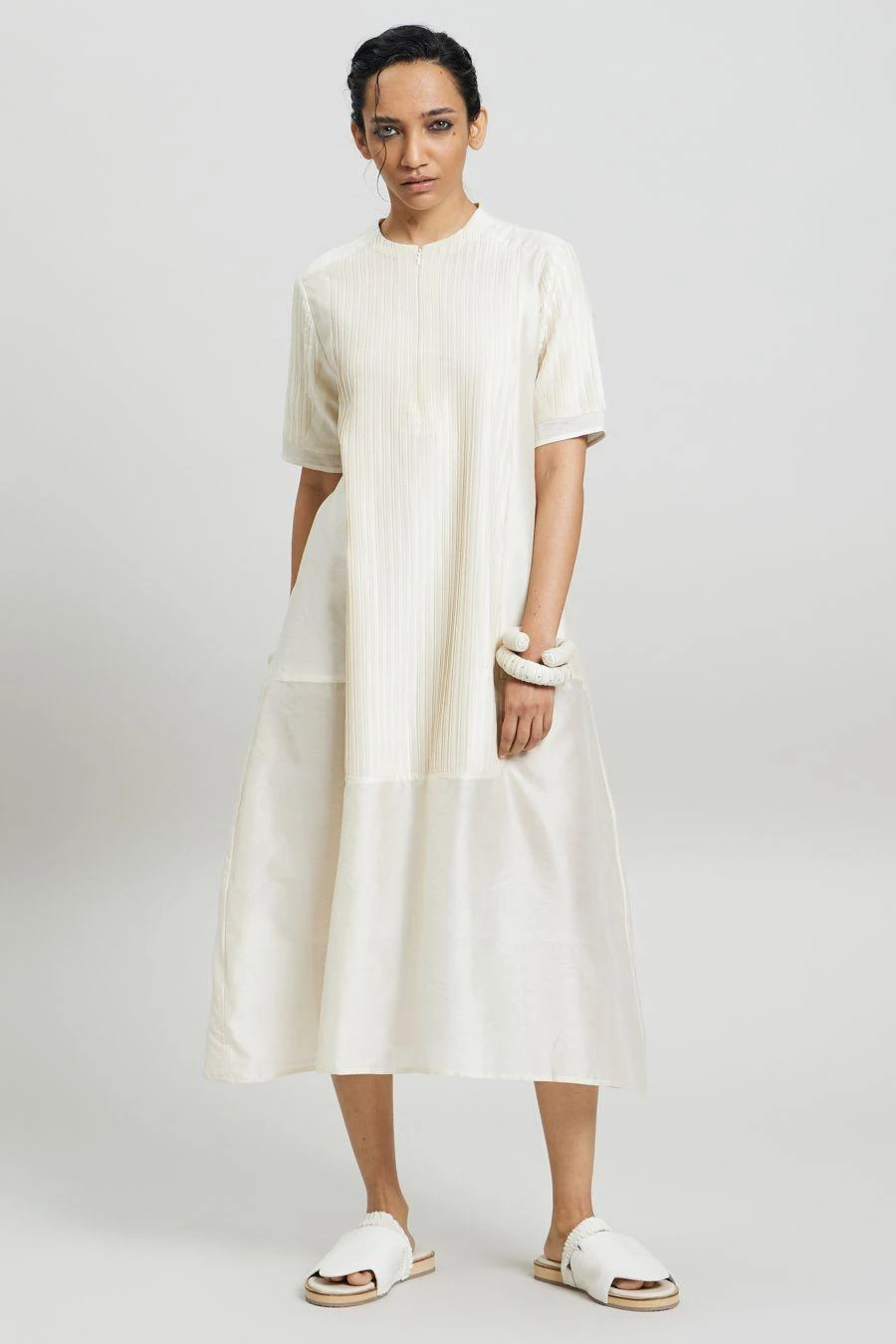 Meticulously crafted from cotton silk, this dress features a sleek silhouette & understated design that exudes sophistication. Its delicate details and impeccable tailoring make it the perfect choice for any occasion, whether dressed up or down.