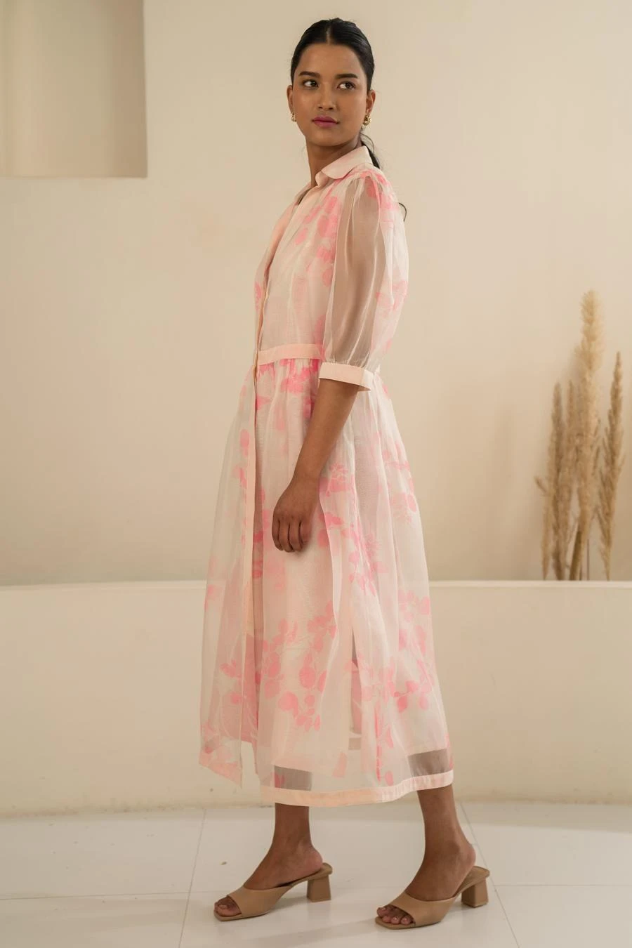 From your work desk to the brunch table & from lounging at home to catching flights, you can always count on this dress. Crafted in chanderi, this double layered dress features an abstract floral print all over