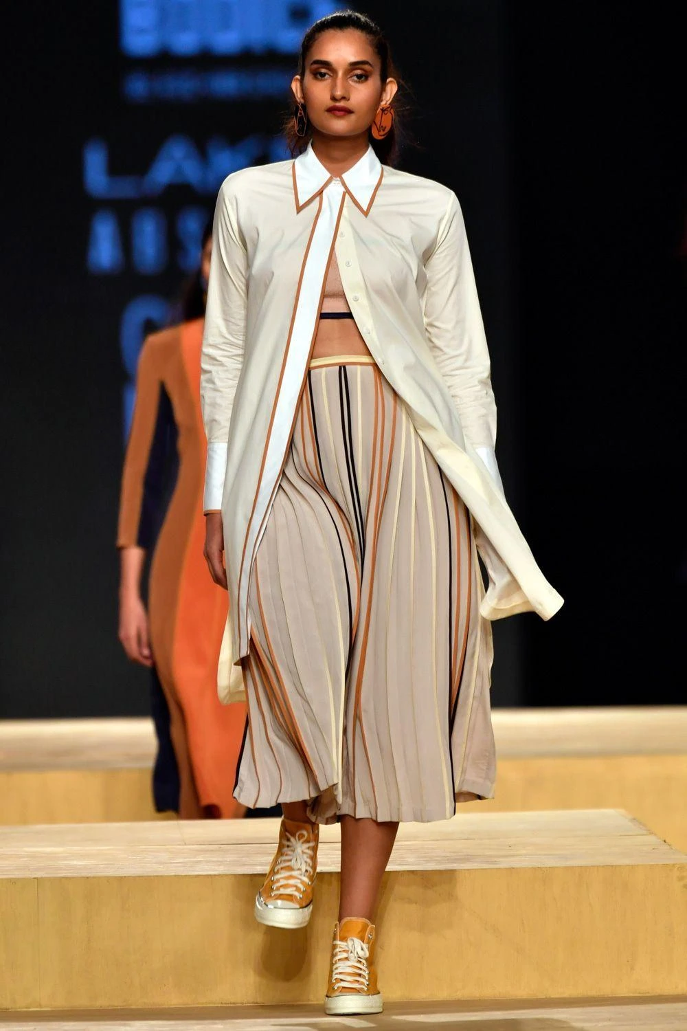 This ivory shirt dress is a great pick for your off duty looks. It is cut in 100% cotton poplin and uplifted with subtle binding detail on the collar & the concealed placket. Style this dress with a pair of statement earrings for an elevated look.