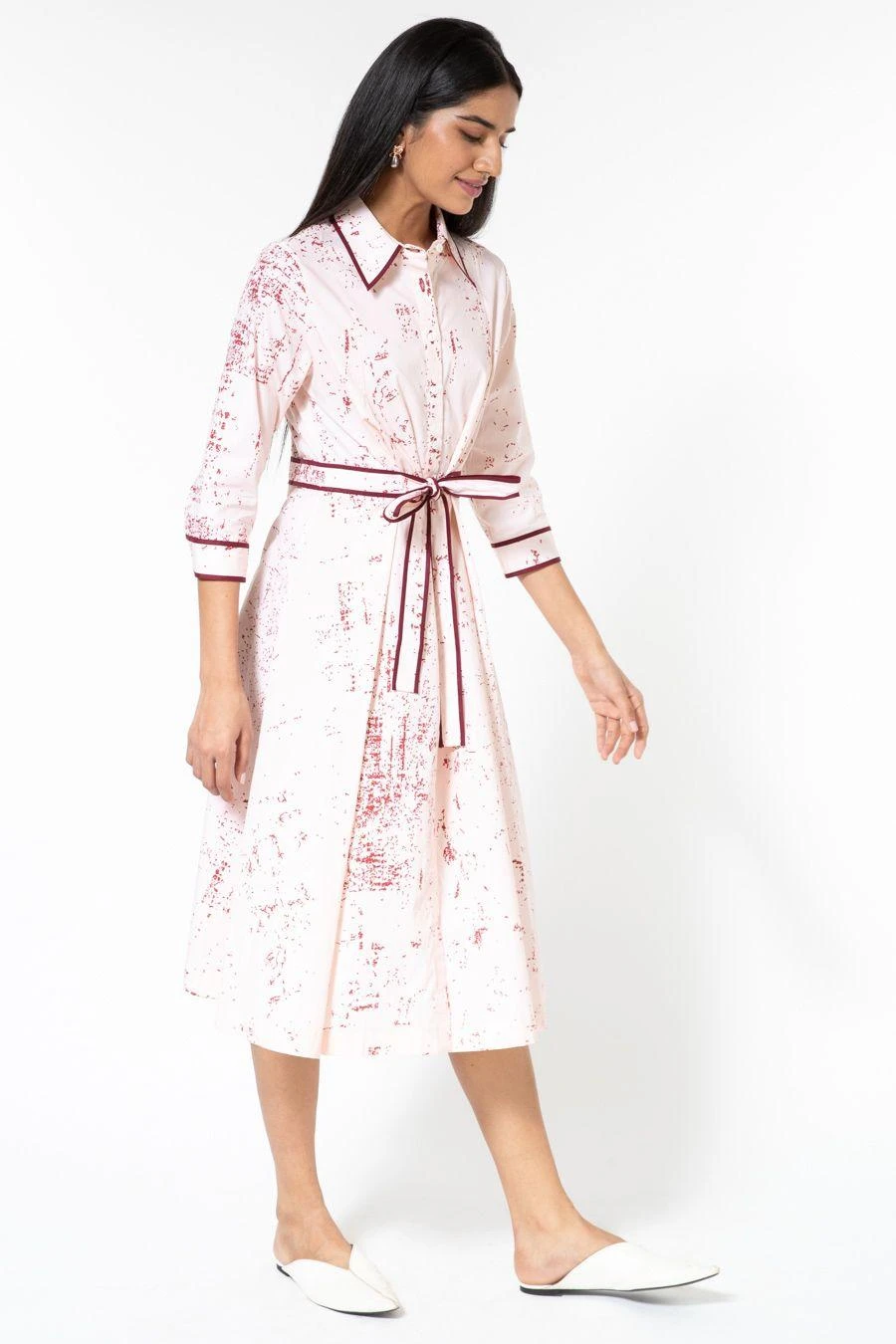 From your work desk to the brunch table & from lounging at home to catching flights, you can always count on this dress. Crafted in cotton poplin, this collared dress features a front tie up detail. Add a pair of dainty earrings to complete the look.