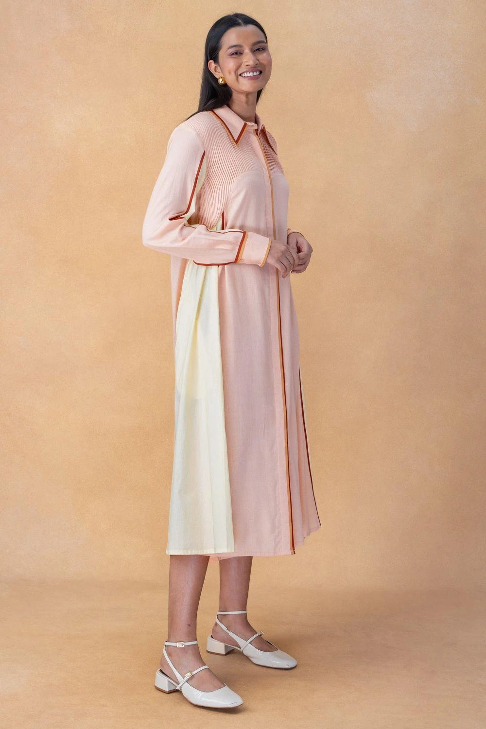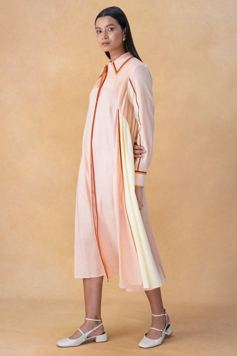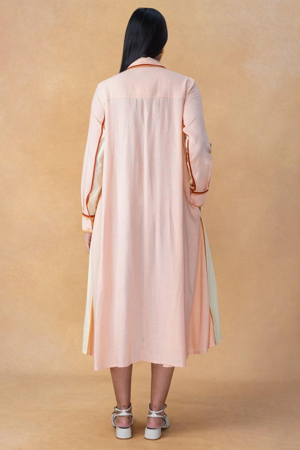 Discover sophistication reimagined in this Salmon Butter Patchwork Kurta Dress. A harmonious fusion of colour and design, this dress boasts a captivating collar and intricate patchwork details that redefine modern style.