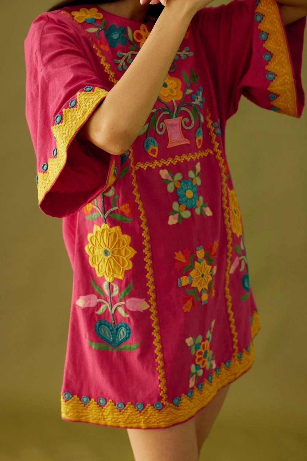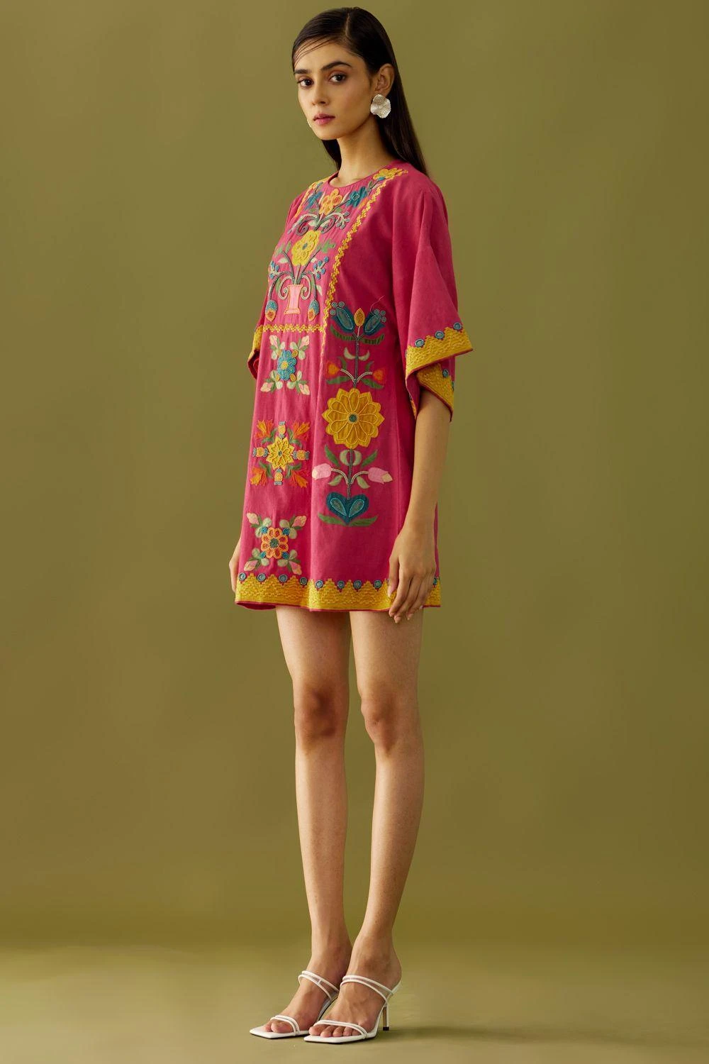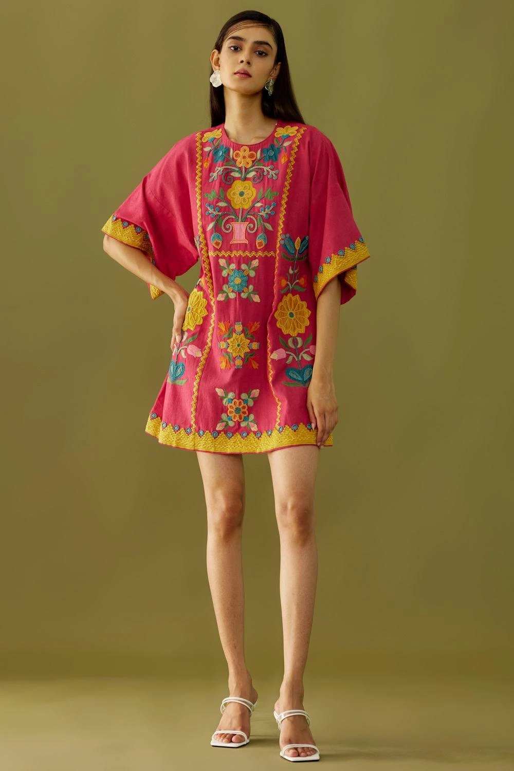 Maximise the life of your wardrobe with this exquisite short dress. Cut in cotton, it features a floral embroidery all over. Style this chic dress with a stack of bracelets to complete the look.
