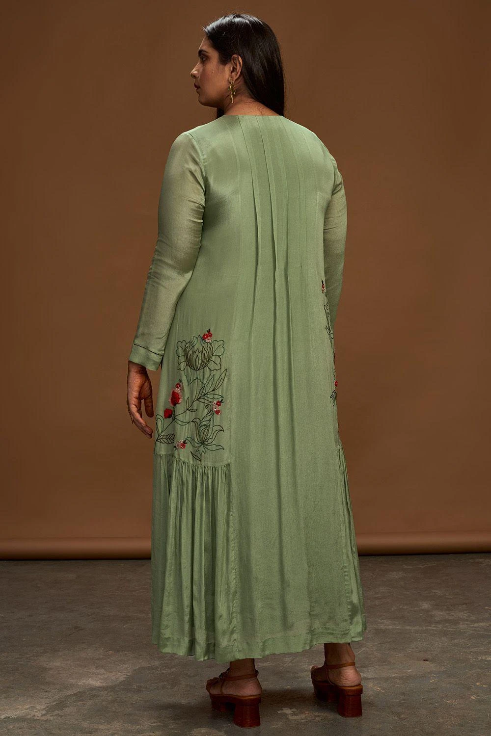 Half Full Curve Sage Floral Embroidered Dress
