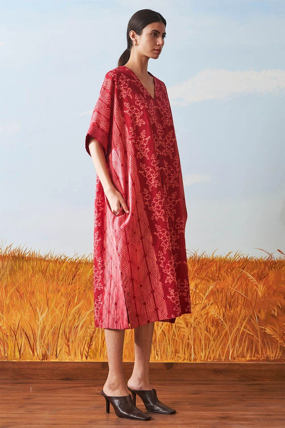 Ikai Pleated V Neck Kaftan Dress