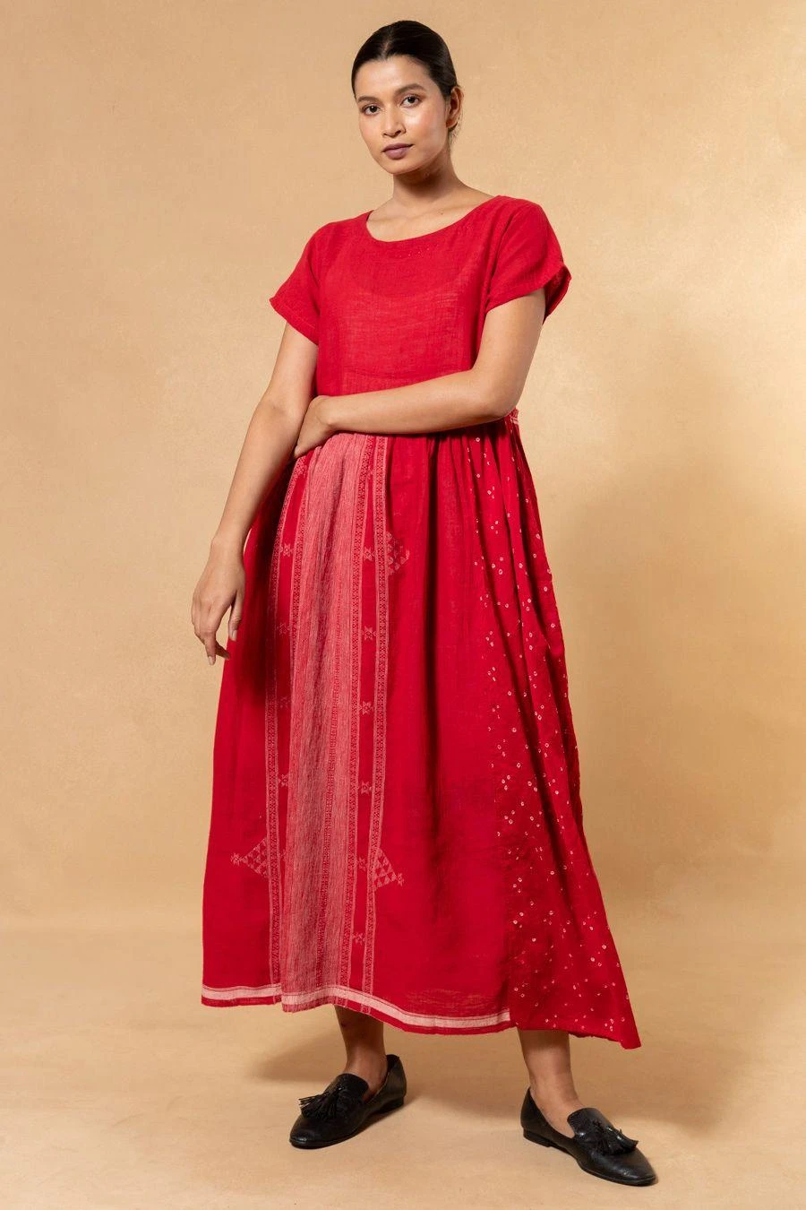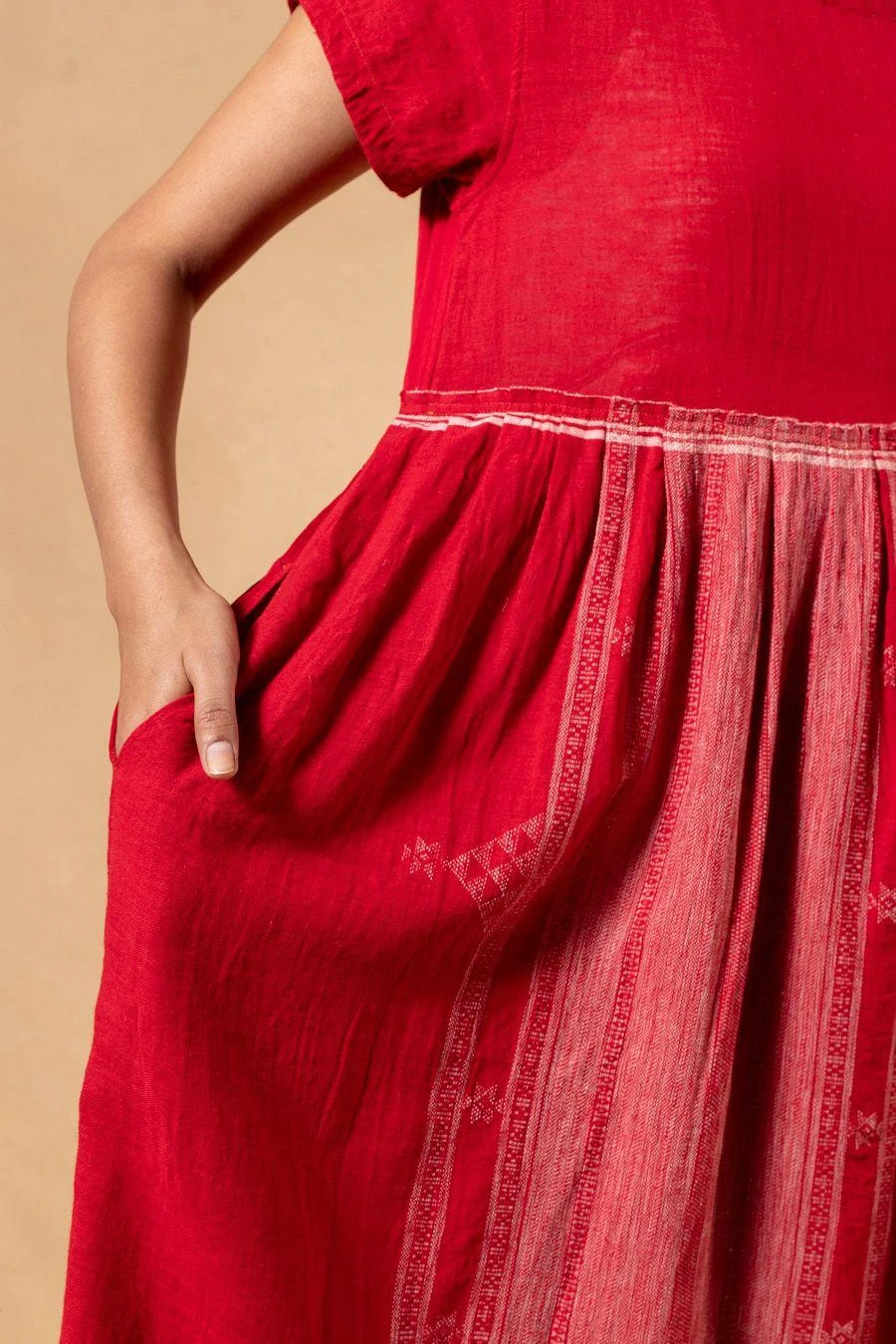 Handwoven from the finest quality cotton, this dress is a labour of love. Drawing inspiration from ancient textiles, Injiri weaves intricate design stories that highlight the unique codes of each region’s craftsmanship