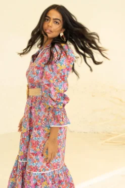 Step into classic charm with this blue checkered knot cotton wrap dress. Featuring a front tie-up opening and delicately elasticated sleeve hem, it’s a timeless piece that embodies casual elegance.