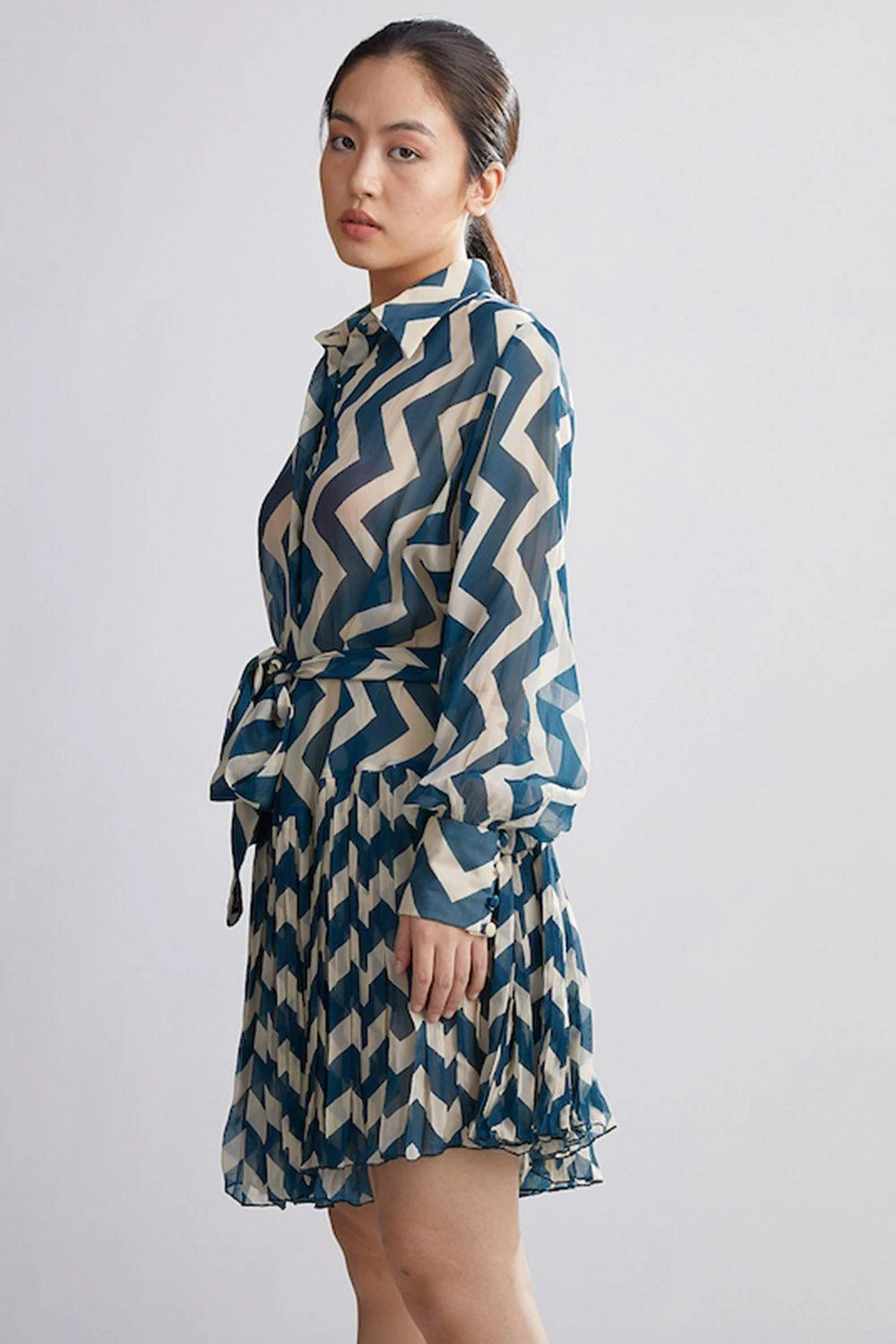 KoAi Teal Zig-zag Shirt Dress