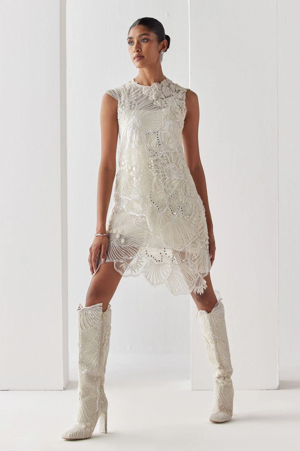 Step into opulent elegance with this embroidered dress. This ensemble is a testament to the perfect fusion of intricate craftsmanship and modern sophistication, setting the stage for a remarkable look.