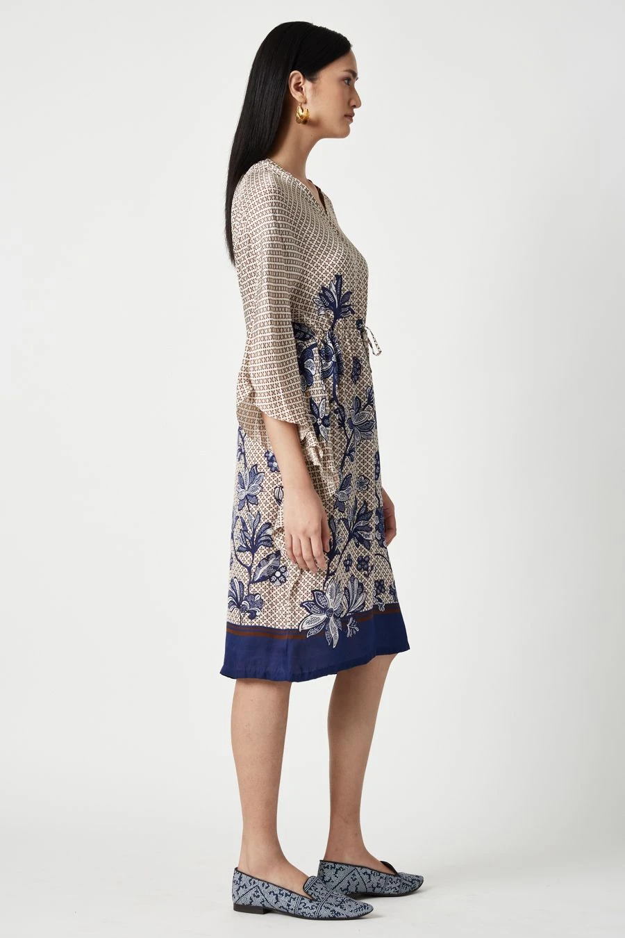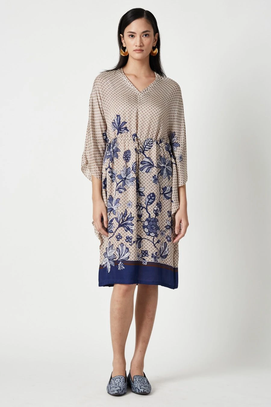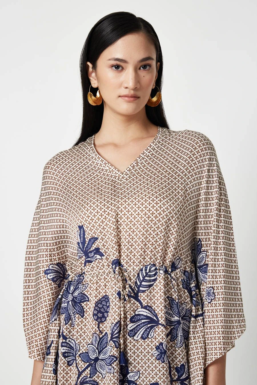 The perfect amalgamation of style and comfort, this tunic is perfect for a day out. Crafted in linen satin, this tunic V-neck tunic features a floral print all over. Add a pair of statement earrings to complete the look.