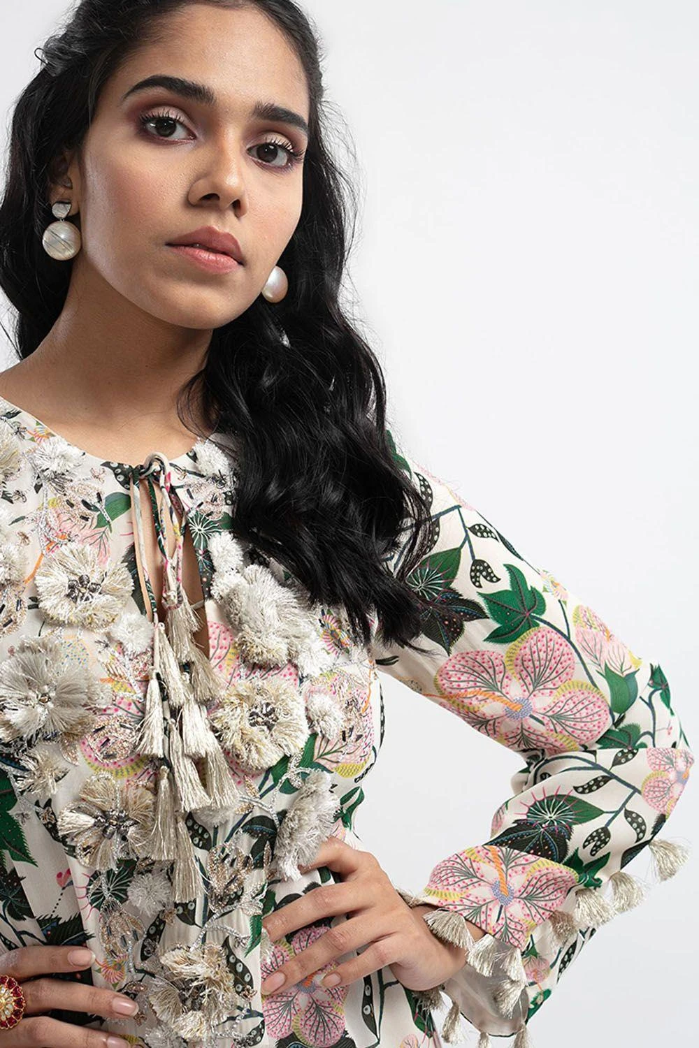 PS Pret By Payal Singhal White Abutilon Print Boho Dress