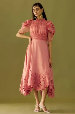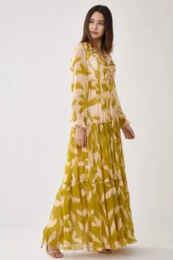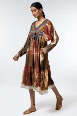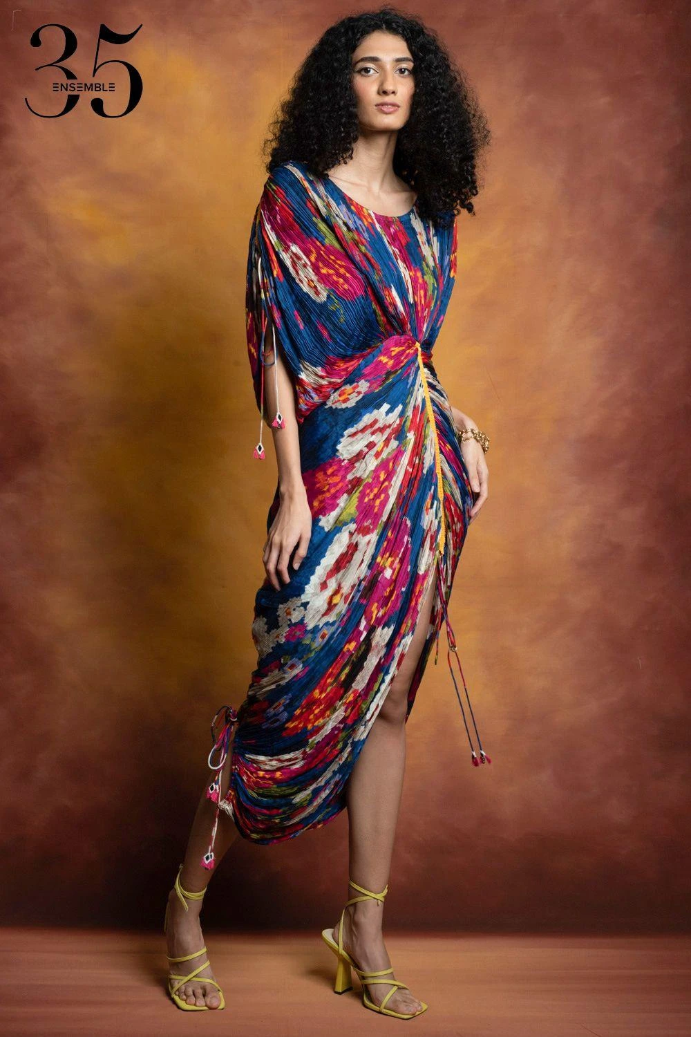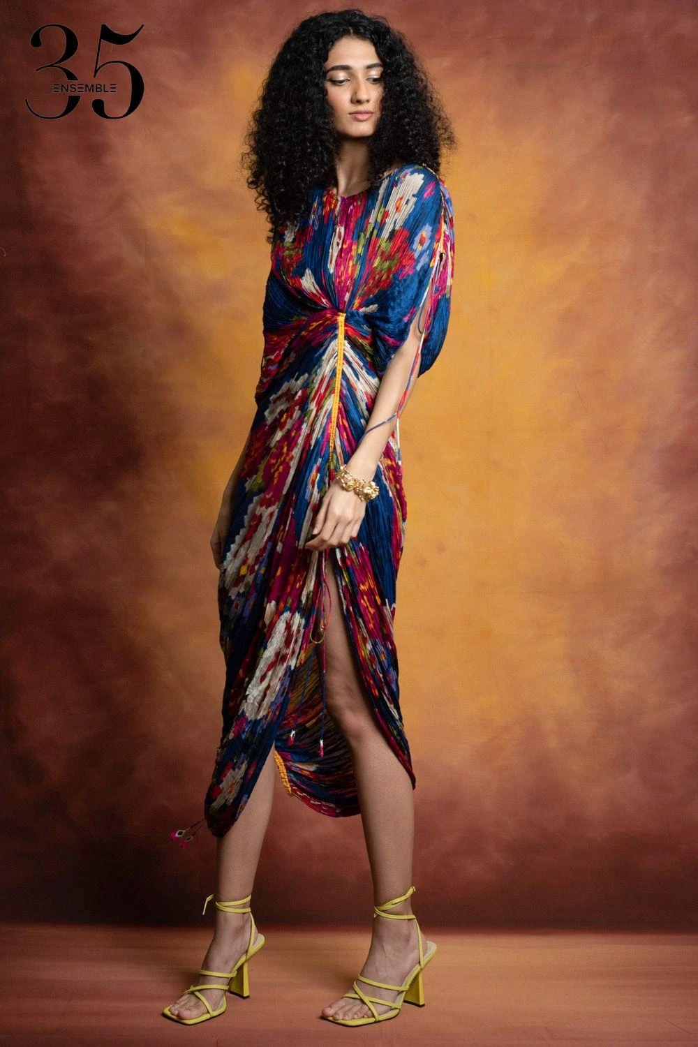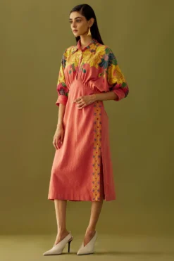 A yearlong celebration of its 35th anniversary telling the story of modern Indian fashion. Add a layer of glamour & statement style to your resort getaways with this dress. This micro pleated dress has a floral print & an adjustable sleeve & length.