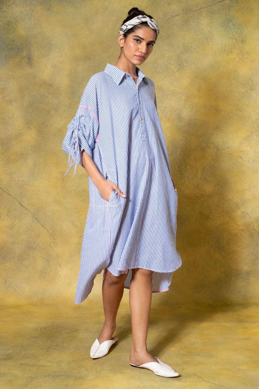 With its timeless appeal and unparalleled adaptability, this collared tunic with an asymmetric hemline stands as an essential in any wardrobe, elevating any and every everyday ensemble with effortless grace.