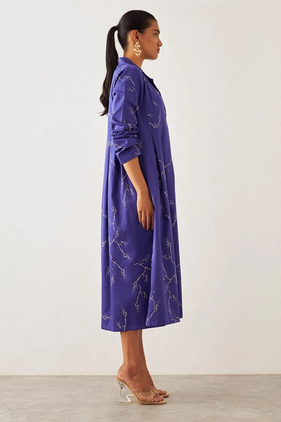 From your work desk to the brunch table & from lounging at home to catching flights, you can always count on this dress. Crafted in cotton, this collared dress features an inverted pleat detail with a flared hem.