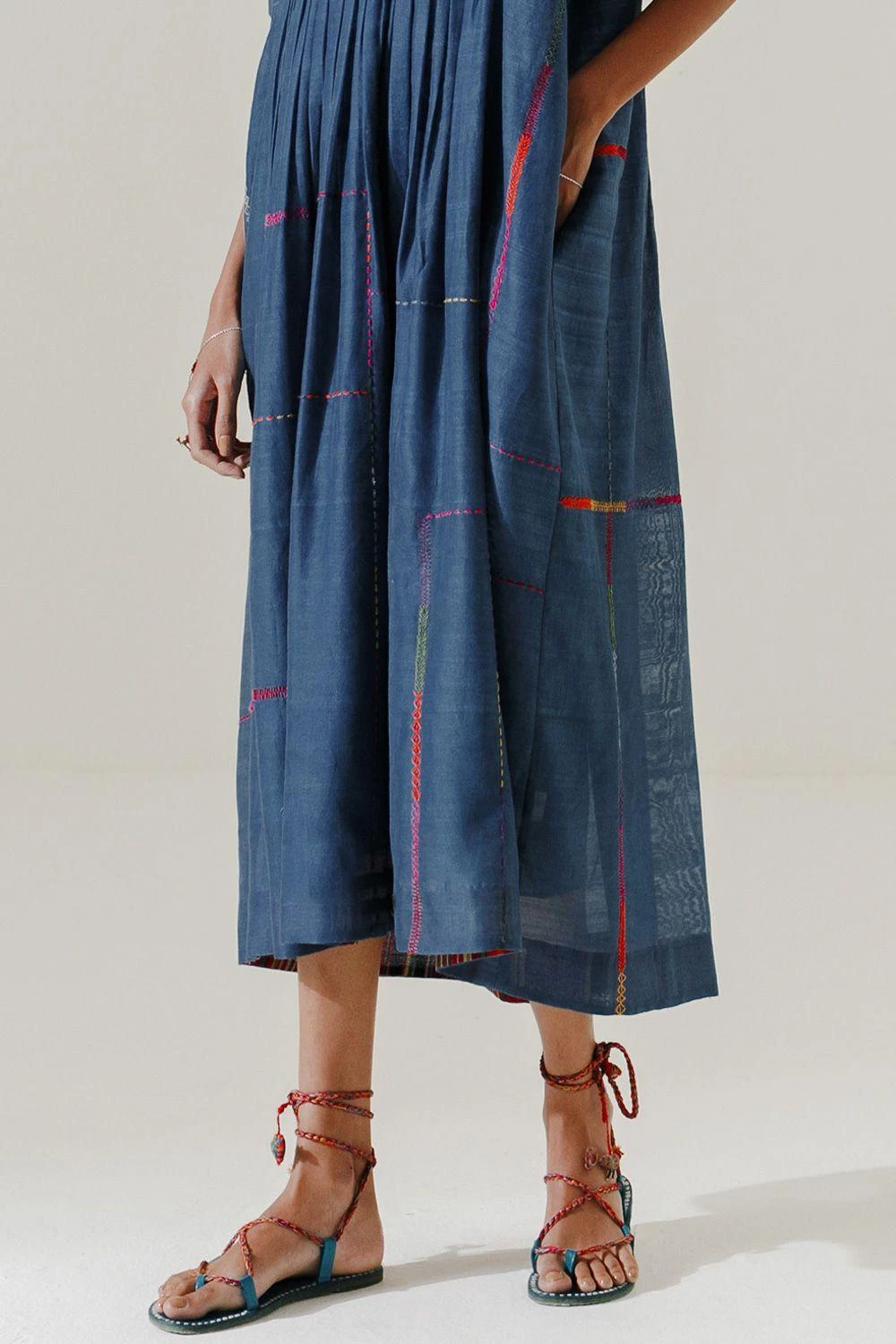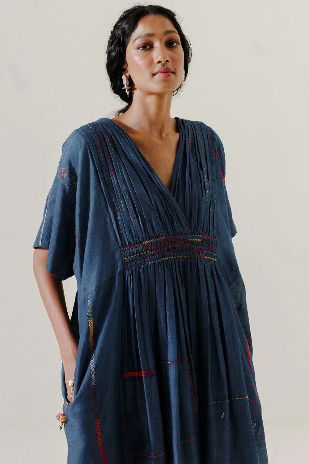 Whether you are lounging at home, vacationing, or dressing for the office, this dress can feel both casual & dressed up. It features an overlap ruched deep V neck with minimal embroidery. Style it with a stack of bracelets to complete the look.