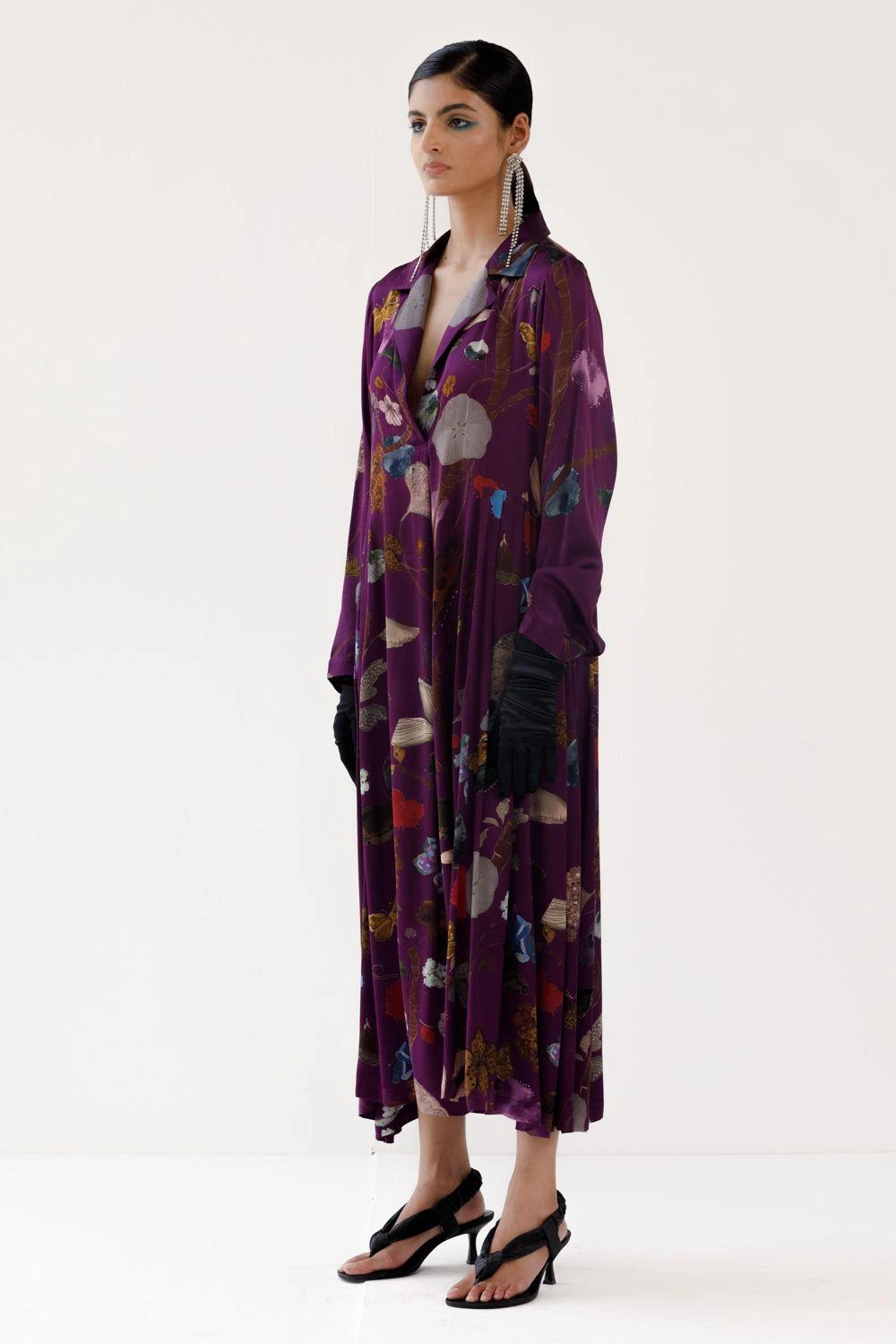 The perfect amalgamation of style and comfort, this dress is perfect for a day out. Crafted in silk, this notched collar floral dress features a half placket and gathers on the waist.